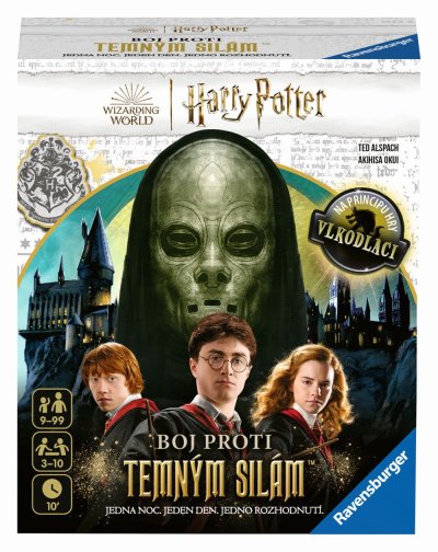 Boj proti temným silám začíná. Jedna noc. Jeden den. Jedno rozhodnutí. Smrtijed, nebo někdo jiný? Tady jsou všichni maximálně podezřelí. Dokážete mistrovsky klamat a šálit? Nikdo si na vás nepřijde? Pak jste tu správně! Po úspěchu blafovací hry „Vlkodlaci za úplňku“ na vás čeká 16 poutavých rolí ze světa Harryho Pottera. Vklouzněte do jedné z rolí a mějte se na pozoru. Dokážou čarodějky a čarodějové kolem Harryho, Rona a Hermiony pomocí magie odhalit Smrtijedy dříve než porazí obyvatele Bradavic? Máte jen jednu šanci to zjistit! Tato napínavá společenská hra vás s partou přátel zabaví klidně na celý večer. Nechce se nikdo z vás ujmout role moderátora? Nevadí. Součástí hry je aplikace, kterou si snadno a zdarma stáhnete do svého chytrého telefonu, a pomocí nahrávek za vás převezme roli moderátora a provede vás celou hrou. Obsah: 16 karet rolí, 16 žetonů rolí.