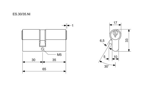 Vložka cylindrická ES 30+35 Ni na stejný uzávěr, 3. třída bezpečnosti (3 ks) RICHTER.