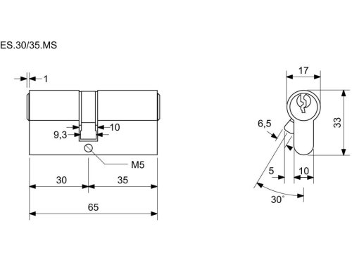 Vložka cylindrická 30+35 6kl. Ms, 3.třída bezpečnosti RICHTER.