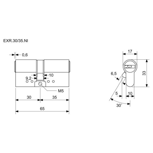 Vložka cylindrická 30 + 35 6 kl. Ni, 4.třída bezpečnosti RICHTER.
