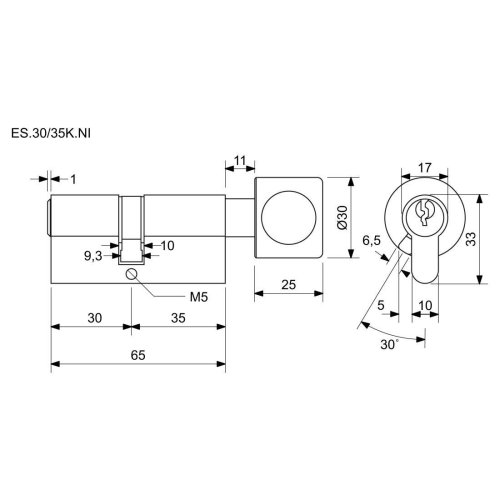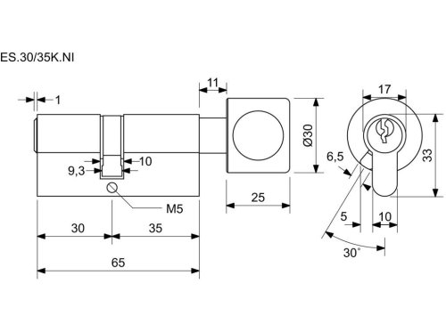 Vložka cylindrická 30 + 35 s knoflikem 6 kl. Ni, 3.třída bezpečnosti RICHTER.
