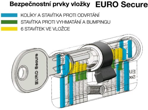 Bezpečnostní 6-ti stavítková vložka s odolností proti nedestruktivní dynamické metodě (tzv. bumping) certifikována v BT3 dle ČSN P ENV 1627.
