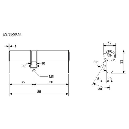 Certifikováno v bezpečnostní třídě RC3 dle ČSN EN 1627:2012. Certifikát NBÚ typ 2 SS4=2. Bezpečnostní 6stavítková vložka s odolností proti odvrtání a nedestruktivní dynamické metodě (tzv. bumping). Ochrana proti odvrtání pomocí 6ti prvků z kalené oceli. Tvoří ji 5 kolíků a 1 stavítko. Možnost společného uzávěru - „SU“ - cena, viz Katalog dílů. 40.000 reálných kombinací klíče. Materiál vložky a klíčů: mosaz Povrchová úprava: matný nikl (NI) Volně kopírovatelný klíč. Balení obsahuje: 6 ks prodloužených klíčů, 2 ks šroubů 50 + 60 mm, identifikační kartu. Standardně jsou vložky baleny v krabičce. Možno také objednat v transparentním blistru + á 7,- Kč/ks.
