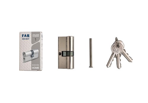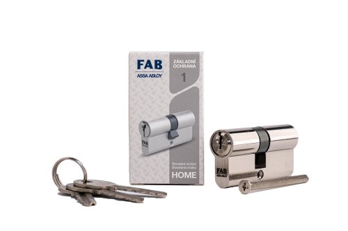 Stavební cylindrická vložak FAB 1 HOME je určená pro dveře vyžadující pouze dočasné uzamčení po dobu stavby, základní úroveň zabezpečení. 5ti stavítkový uzamykací systém. Těleso i bubínek ze slitiny zinku Zamak. V balení 3 ocelové krátké klíče.