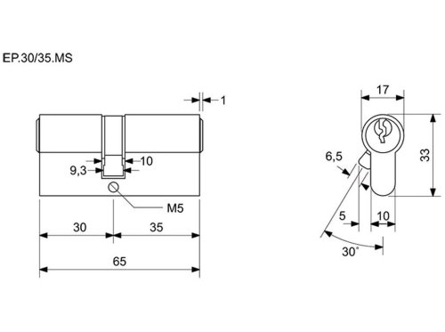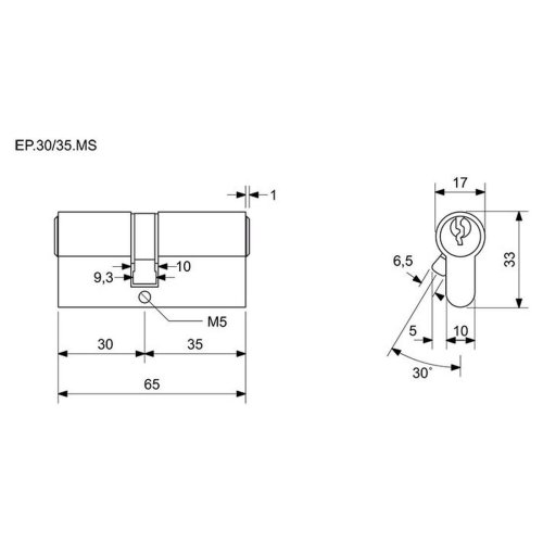 Vložka cylindrická stavební EP 30+35 3 kl. Ms RICHTER.