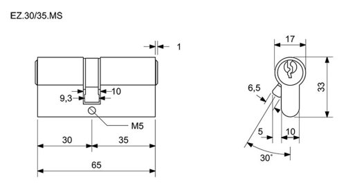 Vložka cylindrická stavební EZ 30+35 3 kl. Ms RICHTER.