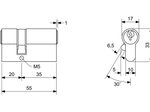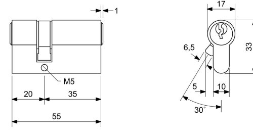Stavební vložka Euro Minus. Extra krátká 4stavítková (pro stranu 20 mm) nebo 5stavítková (pro stranu od 25 mm) vložka. Možnost společného uzávěru - „SU“. Volně kopírovatelný klíč.
