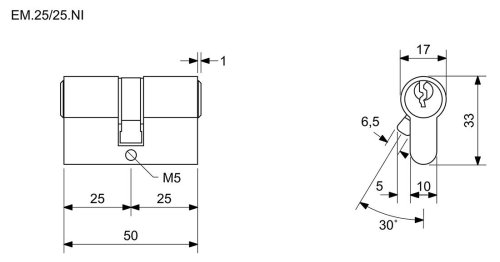 Vložka stavební EURO MINUS 25+25, 3 klíče, Ni, RICHTER.
