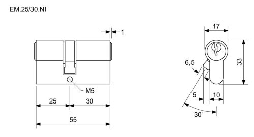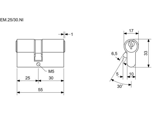 Vložka stavební EURO MINUS 25+30, 3 klíče, Ni, RICHTER.