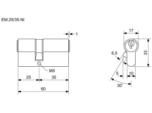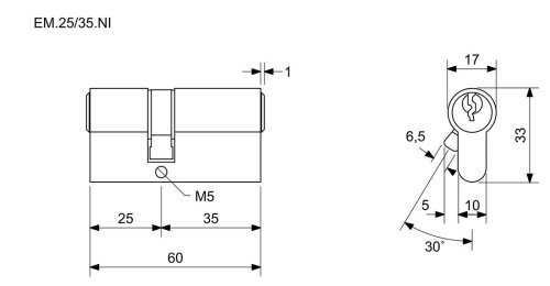 materiál vložky a klíčů: mosaz povrchová úprava: matný nikl (Ni) balení obsahuje: 3 ks klíčů, 2 ks šroubů 50 + 60 mm