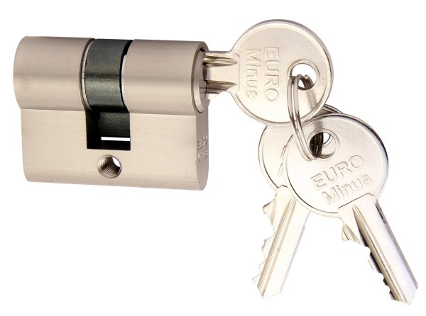 Stavební vložka Euro Minus. Extra krátká 4stavítková (pro stranu 20 mm) nebo 5stavítková (pro stranu od 25 mm) vložka. Možnost společného uzávěru - „SU“. Volně kopírovatelný klíč.