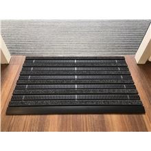 Designová a velmi kvalitní vnitřní rohož s hustým vlasem v kombinaci s kartáčem Pozoruhodný plochý design této sběrné čistící rohože má za následek vynikající čištění obuvi Černý elox, zkosená hliníková …