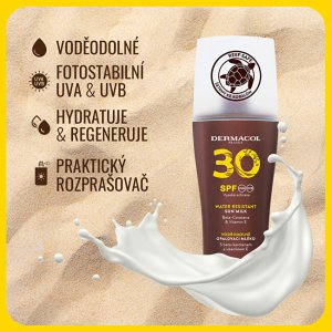 Opalovací mléko SPF 30, spray se příjemně a lehce aplikuje, chrání pokožku, dokonale ji zvláčňuje a hydratuje, zabraňuje poškození a předčasnému stárnutí pokožky vlivem UV záření.
