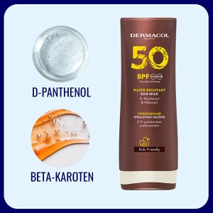 Voděodolné opalovací mléko SPF 50 s účinnou a spolehlivou ochranou proti UVA a UVB, chrání pokožku před spálením a poškozením. Zklidňuje pokožku a zabraňuje jejímu podráždění. Vhodné i pro jemnou dětskou pokožku od 3 let.
