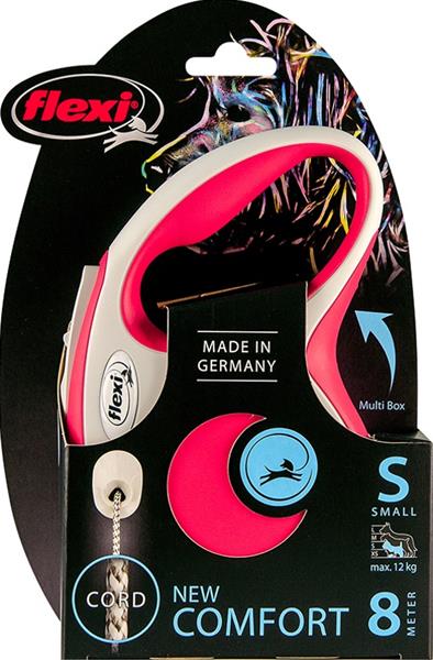 Dokonale navržené dvoubarevné vodítko Vás upoutá na první pohled. New Comfort nabízí všechny funkce, které potřebujete a proto si ho brzy zamilujete! Vylepšený brzdový systém s krátkým zdvihem umožňuje více kontroly, ergonomické držadlo je nastavitelné dle velikosti ruky (od velikosti M). Lze přidat i Multi Box pro ukládání pamlsků či sáčků (od velikosti S). Rodinná firma flexi vyrábí výhradně na území Německa. V závodě v Bargteheide u Hamburgu vzniká vše, počínaje návrhem až po výrobu vysoce kvalitních vodítek – Made in Germany. Firma flexi je vynálezcem samonavíjecího vodítka a jedničkou na světovém trhu, exportuje do více než 90 zemí světa. Originální samonavíjecí vodítka flexi se vyznačují patentovaným, po technické stránce nejmodernějším pružinovým systémem a komfortním ovládáním. Jsou vyráběna z vysoce kvalitních materiálů, exkluzivně manuálně zpracovaná a sestavená. Vodítka prochází před expedicí mnoha kontrolami kvality. Velikost: S – vhodné pro psy o hmotnosti do 12 kg. Typ vodítka: Navíjecí – lanko. Délka pásku/lanka: 8 m Barva: červená