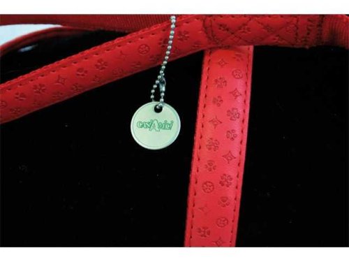 kožené vodítko červené barvy s celopotiskem podšitý jemným nylonem ve stejné barvě