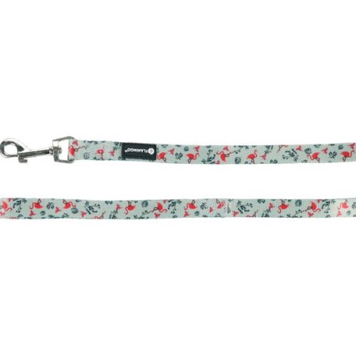 Jednoduché páskové vodítko pro psy Flamingo Samar s potiskem plameňáků je vyrobeno z pevného a voděodolného nylonu. Na konci vodítka je chromovaná karabina pro bezpečné připnutí k obojku nebo postroji. Hlavní přednosti: