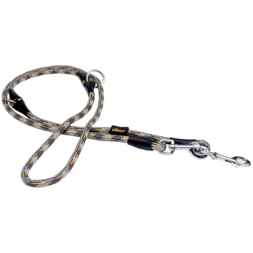 Přepínací vodítko z velmi pevného lana je vhodné pro střední a velká plemena. Spoje jsou svařené, prošité a zabezpečené koženou krytkou. Po délce lana je několik svařovaných kroužků, s jejichž pomocí lze vodítko prodlužovat a zkracovat dle potřeby. Díky koženým prvkům se vodítko hodí i ke koženým obojkům. Rozměry: délka 240 cm Ø 12 mm Barva: hnědá