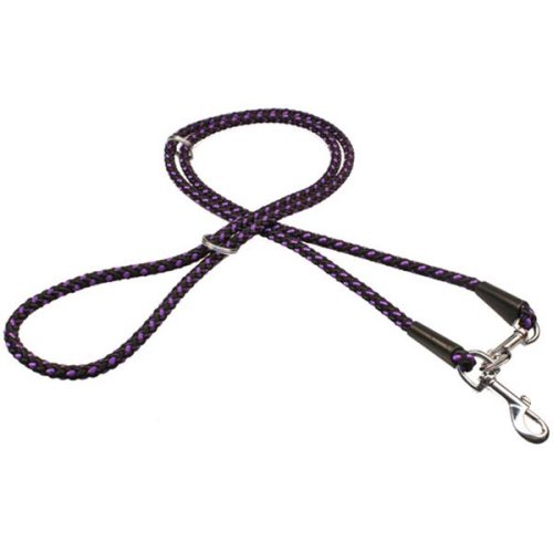 Vhodné pro psy malého a středního vzrůstu. Přepínací vodítko je vyrobené z pevného textilního lana s dvojbarevným vzorem. Spoje jsou vysokoteplotně svařené, prošité a překryté plastovou krytkou. Po délce vodítka jsou umístěné dva kovové kroužky pro přepínání. Na konci je kovová karabinka. Rozměry: Ø 6 mm délka 240 cm Barva: černo-fialová