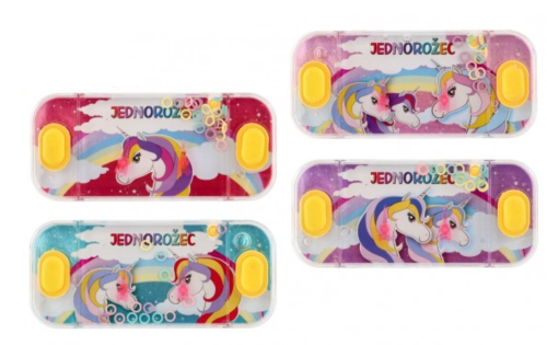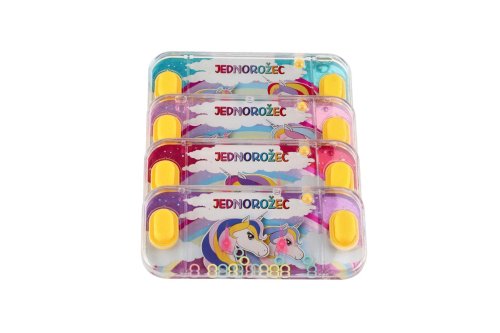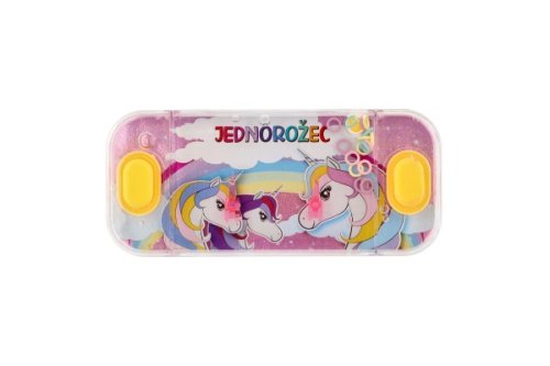 Tradiční dětská hra, která neomrzí. Princip hry je jednoduchý. Mají za úkol dostat na špičaté stožárky kroužky vznášející se ve vodě a to pouhým stiskem tlačítka. Tato hra podporuje soustředění a trpělivost. Vybrat si můžete z několika spíše holčičích motivů s jednorožcem. Rozměr hry: 15,5 x 7 cm Vhodné pro děti od 3 let