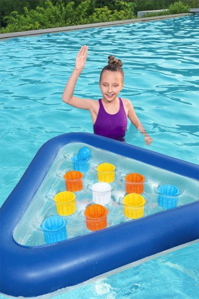 Kulečníková hra Pong Champion. Rozměry: 105cm x 97cm. 10 barevně odlišených otvorů na platformě – házejte míček do stejného otvoru a skórujte. 9 herních míčů ve 3 různých barvách pro týmovou hru. Balení: 30x30x6,5cm. Věk: 3+