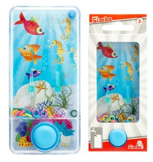 Vodní hra - naplňte vodou a stiskem tlačítka rozprouděte vodu a pokuste se dostat kroužky na své místo. Vhodné pro děti od 3 let. Rozměry 13,5 x 6,5 cm.