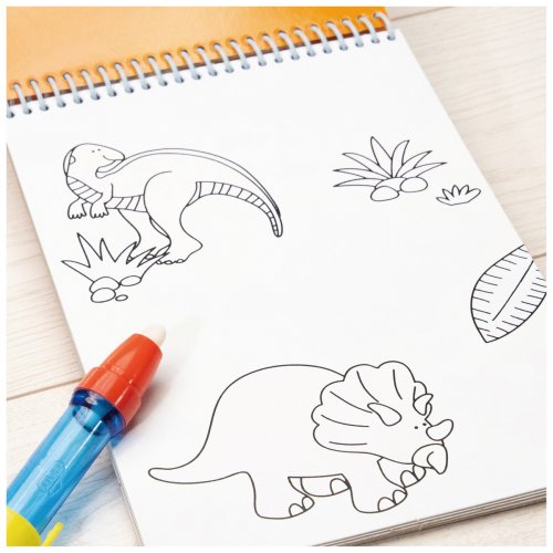 Sada kouzelných omalovánek Vodní magie pro nejmenší s opakovaně použitelnými obrázkovými deskami na pevném očku a novým velkým vodním perem. Tyto zábavné omalovánky obsahují opakovaně použitelné obrázky, které se vybarví vodním perem. Naplníme pero vodou a jeho pomocí dítě odkrývá schované obrázky dinosauřích mláďat. Obrázky se jako zázrakem vybarví a barvy pak zase zmizí, takže je děti mohou vybarvovat pořád dokola. Ideální pro cestování. Rozměry knížky: 265 x 180 x 180 mm