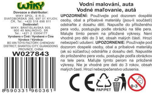 Vodní omalovánky auta s perem. Rozměry 19x16 cm.