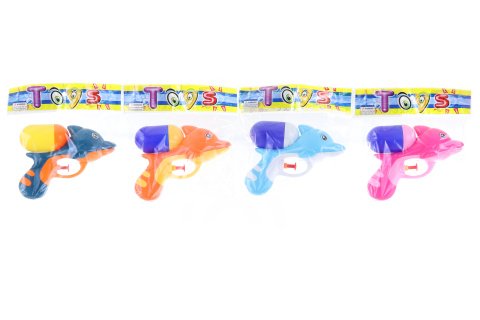 Plastová vodní pistole s hlavou delfína o velikosti cca 14 x 10,5 x 5 cm. Věk 3+