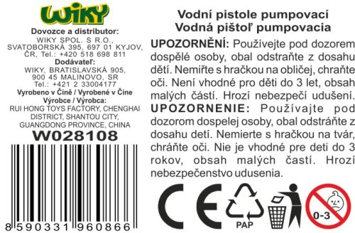 Vodní pistole pumpovací. Délka 30 cm. Objem 650 ml. Střelba pumpováním.