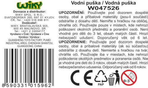 Vodní puška. Rozměry 56x14x23 cm. Dostřel 8 m. 4 módy vodního paprsku.