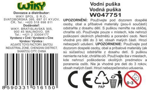 Vodní puška s 15 tryskami. Délka 55,5 cm. Přesné rozměry 55,5x6,5x15,5 cm. 2 varianty - modrá, červená.