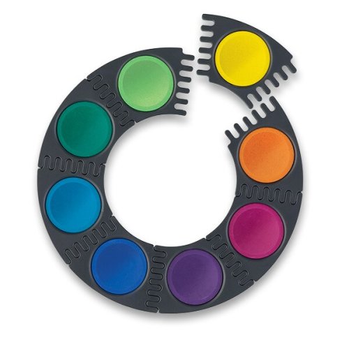 plastová paleta s průhledným víčkem a mnohostranným využitím /místo na jméno, integrovaná políčka pro míchaní vodových barev/, * jednotlivé části s barvou je možné rozložit a libovolně skládat, * vysoké krycí vlastnosti, * zářivé a syté barvy, * dodáváno včetně 7 ml tuby s bílou krycí barvou, Došla vám u vodovek barva? U vodových barev Connector můžete dokoupit jednotlivé barvy., Tipy na použití, * Jednotlivé bločky s barvami můžete navzájem spojovat do různých tvarů a vytvořit tak hravou formou nauku o barvách., * Jsou ideální pro všechny výtvarné techniky a lze je použít nejen při výuce ve škole, ale také při volnočasových aktivitách., V roce 2012 získaly vodové barvy Connector ocenění od německého Průmyslového svazu Pro-k jako nejlepší produkt roku. Toto ocenění bylo uděleno za inovativní, kreativní a praktický, design těchto barev a za jejich vynikající funkčnost., , K vodovým barvám se vám hodí i štětce nebo kelímky na vodu., [otestováno]PODÍVEJTE SE, JAK TYTO VODOVKY DOPADLY V TESTU VODOVEK NA WWW.SKOLNISVET.CZ