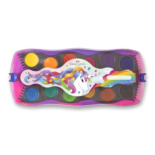 plastová paleta s průhledným víčkem a mnohostranným využitím, * jednotlivé části s barvou je možné rozložit a libovolně skládat, * vysoké krycí vlastnosti, * zářivé a syté barvy, * tuba s bílou barvou, * sada samolepek s motivem jednorožce