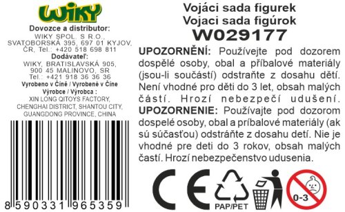 Vojáci sada figurek 11 cm a zbraní. Obsah balení - 3 x figurka vojáka 11 cm, 3x batoh s výstrojí, 4x zbraň.