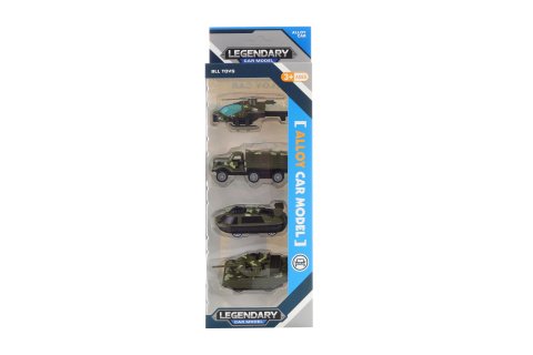 Vojenská kovová sada. Baleno v krabici. Rozměry balení cca 11x31x4 cm. Velikost auta cca 8,5 cm. Věk 3+