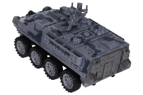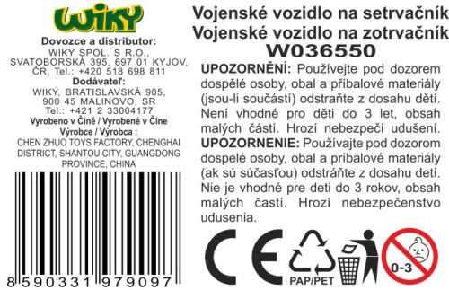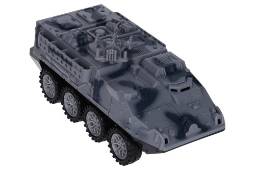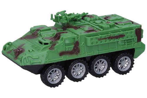Vojenské vozidlo. Rozměry 17x9x8 cm. Na setrvačník. 2 barevné varianty.