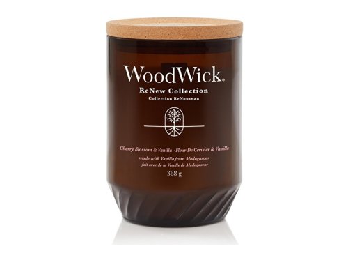 Inspirativní vůně třešňových květů, smísených s aromatem mandle, pomeranče a vanilky z Madagaskaru. Pomerančový olej je z upcyklovaných pomerančů. Kolekce WoodWick® ReNew je výsledkem zodpovědného přístupu k výrobě svíček, obsahuje bio složky, včetně recyklovaných materiálů a přírodních esenciálních olejů. Speciální dřevěný knot vydává jemnější zvuk praskání.