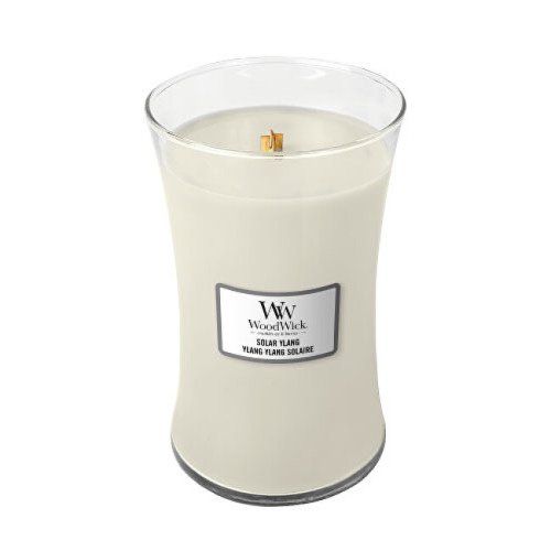 Vonná svíčka váza Solar Ylang - svěží bergamot se jako paprsky slunce proplétá smyslným buketem bílé kytice jasmínu, tuberózy a ylang ylang, zatímco tóny pižma a santalového dřeva dodávají vůni krémovost. Doba hoření až 130 hodin. Tato svíčka s typickým dřevěným víčkem provoní váš domov a naplní ho jemným zvukem praskajícího knotu, který podpoří atmosféru pohodlí a útulnosti. Neboť domov je tam, kde praská oheň. Knot je vyroben z přírodního dřeva. Patentovaný tvar dřevěného knotu Pluswick® Innovation vytváří uklidňující zvuk praskajícího ohně. Jedinečný křížkový tvar tohoto dřevěného knotu umožňuje až 5x rychlejší rozpuštění voskového jezírka než klasický bavlněný knot. Proto rychle prodchne místnost příjemnou vůní. Tento patentovaný knot garantuje krásné a čisté hoření bez sazí na skle. Vytváří jemný zvuk praskajícího ohně. Dřevěné víčko poslouží jako podstavec pod svíčku při jejím hoření a chrání tak povrch nábytku.