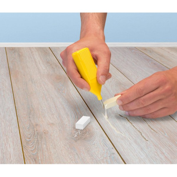 Opravný vosk na poničenou podlahu dokáže vyplnit a zakrýt škrábance na parketách, laminátu a podlahových deskách