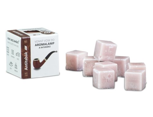 Vonný vosk Antitabák je vyroben z kvalitního vosku a vonných esencí, které zajišťují příjemnou a dlouhotrvající vůni antitabáku. Vosk je rozdělen do 8 kostiček, které lze použít v elektrických i klasických aromalampách na čajovou svíčku. Je vhodný pro osvěžení interiérů a lze jej používat přímo v prostoru bez nutnosti aromalampy. Rozměry: délka 1,6 cm, šířka 1,6 cm, výška 1,6 cm. Hmotnost: 30 g. Barva: šedá.
