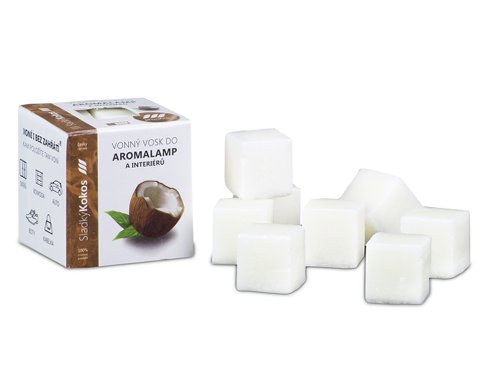 Vonný vosk Sladký kokos je vyroben z kvalitního palmového vosku a vonných esencí, které zajišťují sladkou, exotickou a dlouhotrvající vůni kokosu. Vosk je rozdělen do 8 kostiček, které lze použít v elektrických i klasických aromalampách na čajovou svíčku. Je vhodný pro osvěžení interiérů a lze jej používat přímo v prostoru bez nutnosti aromalampy. Rozměry: délka 1,6 cm, šířka 1,6 cm, výška 1,6 cm. Hmotnost: 30 g. Barva: bílá.