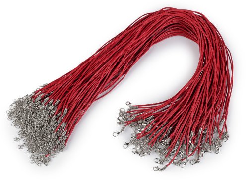 Voskovaná šňůrka s karabinkou délka 45 cm - červená (20 ks)
