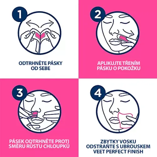 Veet voskové pásky pro citlivou pokožku a ubrousky pro závěrečnou péči Perfect Finish. Gelové složení s technologií Easy-Gel™ pro pocit hladké a hydratované pokožky.