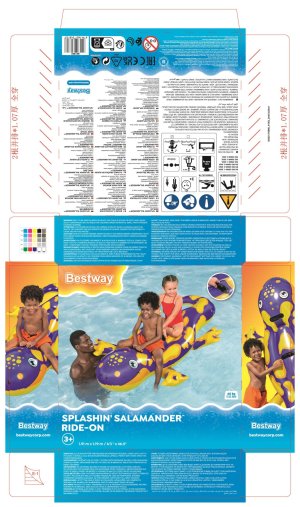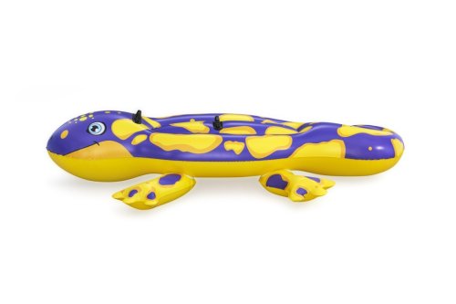 Nafukovací hračka ve tvaru mloka je určena pro děti od 3 let a nabízí zábavu ve vodě pro malé i větší uživatele. Tento nafukovací mlok má rozměry 191×119 cm a je vyroben z pevného a odolného vinylu, který zajišťuje dlouhou životnost i při častém používání ve vodním prostředí. Svým vzhledem připomíná barevného mloka s výrazným fialovo-žlutým vzorem, který je velmi atraktivní a upoutá pozornost dětí.