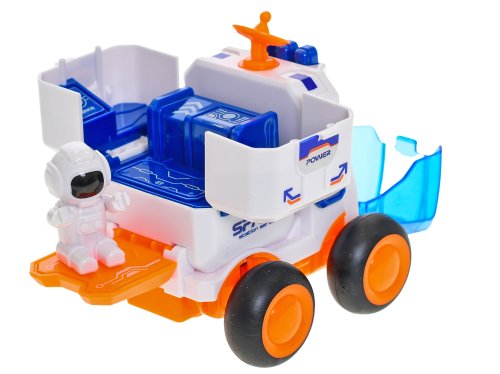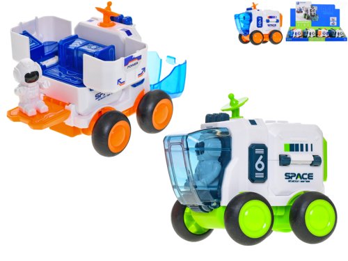 Vozidlo vesmírné 9,5 cm na setrvačník s astronautem - mix barev (oranžová, zelená)