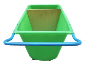 Vlastnosti: Objem korby: 400 l Nosnost: 200 kg Délka: 1500 mm Výška: 960 mm Šířka: 790 mm Průměr předního kola: 260 mm (nafukovací) Průměr zadního kola: 100 mm (plné kolo) Dvě dřevěné překližkové výztuhy zajišťující stabilitu a rozdělení nákladu. Pevná plastová korba z odolného materiálu, snadno omyvatelná. Ocelový rám s práškovým lakováním.