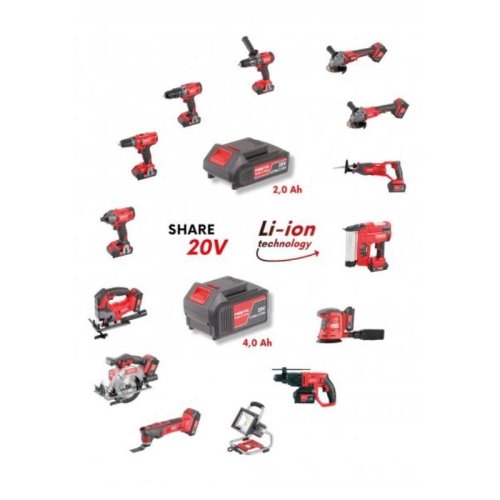 • FESTA SHARE 20 V - AKU vrtačka je součástí skupiny výrobků s možností využívat Li-ion batarie 2.0 Ah a 4.0 Ah ve všech strojích takto označených