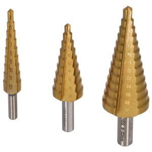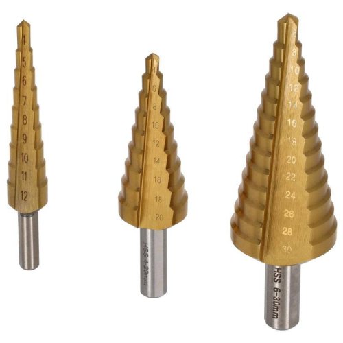 stupňovité vrtáky pro použití v materiálech o tloušťce do 4 mm pro vtrání bez otřepů