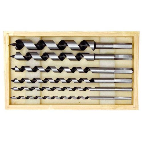 hadovité vrtáky do dřeva - sada 6 ks rozměry: průměr 6, 8, 10, 12, 16, 20 x 230 mm vrták má samostředící hrot se závitem, hlavní a předřezový břit určen k vrtání přesných děr větších průměrů a hloubky …